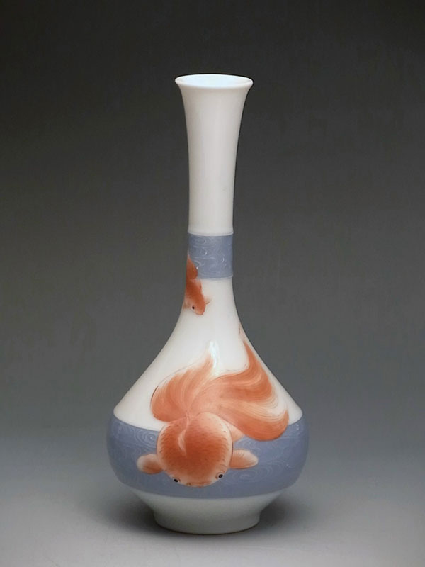 金魚文釉下彩花瓶
