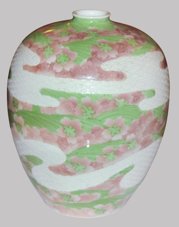 桜文釉下彩瓶