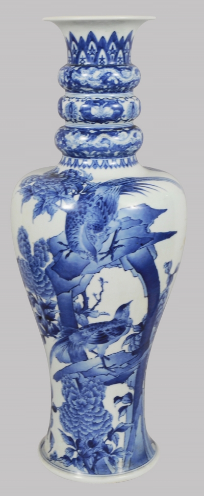 牡丹文金鶏文染付花瓶