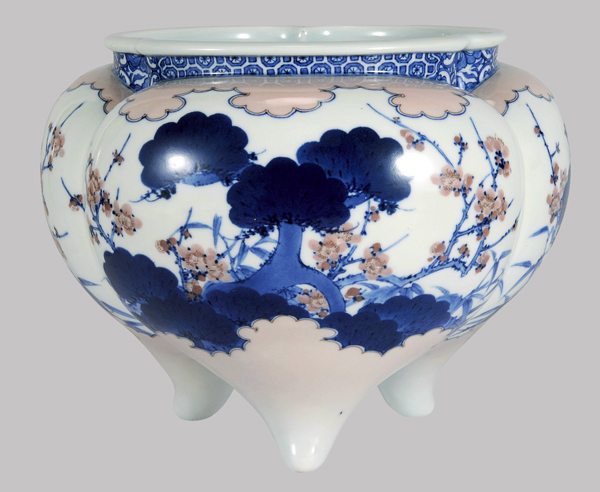 松枝文釉下彩香炉