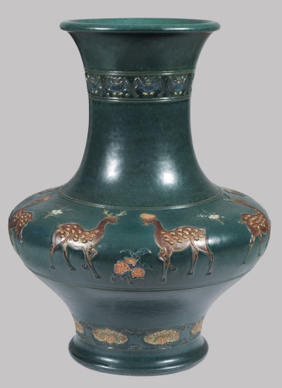 鹿文色嵌釉瓶