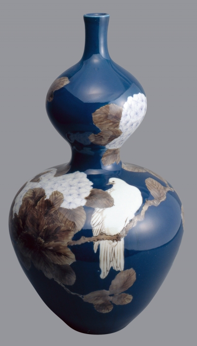 宮川香山 白鳩に桜花文釉下彩瑠璃瓢箪形瓶 解説 関 和男 |