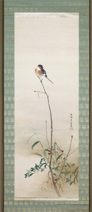 庭山耕園 秋草に百舌鳥