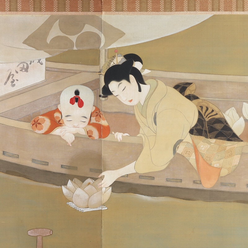 本屏風は大正5年第10回文展集品作で今まで公開されず幻の屏風であった。