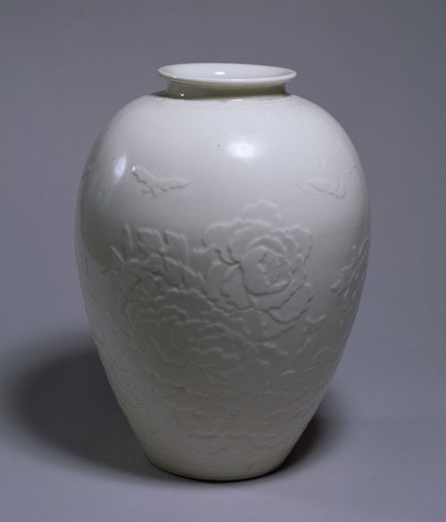 白磁蝶牡丹浮文大瓶