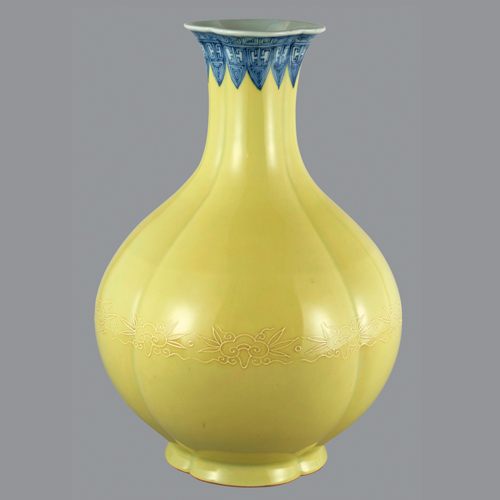 縁染付黄地瓶