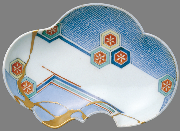 亀甲散文色絵変形小皿